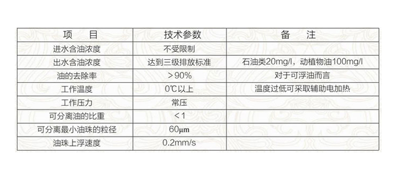 可廣泛用於賓館、飯店、食堂、食品加工等含動植物油廢水的處理,也使用與油田、石油化工、船舶、加油站、機械加工制造、以及煉焦等含礦物油的工業廢水的處理,還可以與其他水處理裝置配套使用。